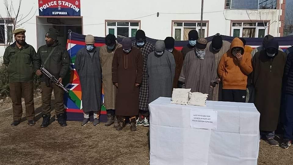 منشیات کے نیٹ ورک کوپولیس نے طشت از بام کر دیاسرحدی ضلع کپوارہ اور سرحدی قصبہ اوڑی سے چار ایس پی اوز ایک پولیس کانسٹیبل باپ بیٹے سمیت 17افراد گرفتار بڑی مقدار میں ہیروئن ضبط ،پاکستانی زیرانتظام کشمیرمیں ہینڈلر کے ساتھ رابطہ ہونے کا معاملہ بھی طشت از بام تحقیقات شروع مزیدگرفتاریاں متوقع ۔ سرحدی ضلع کپوارہ میں مصدقہ اطلاع ملنے کے بعد پولیس نے پاکستانی زیر انتظام کشمیرسے منشیات پہنچاکروادی کے مختلف علاقوں میں فروخت کرنے اور نوجوانوں کواس لت میں مبتلاکرنے کے نیٹ ورک کو طشت از بام کردیا۔مصدقہ اطلاع ملنے کے بعد پولیس نے سرحدی ضلع کپوارہ اوڑی میں الگ الگ کارروائیوں کے دوران پولیس کانسٹیبل جموں وکشمیر پولیس میں بحٰثیت ایس پی اوز اپنی خدمات انجام دینے والوں کے سمیت 17افراد کی گرفتاریاں عمل میں لائی۔ پولیس کی جانب سے جاری کئے گئے بیان کے مطابق منشیات کی سمگلنگ کے سلسلے میں مصدقہ اطلاع ملنے کے بعدسرحدی ضلع کپوارہ کے درزی پورہ علاقے سے ایک پولٹری مالک محمدوسیم نجار ولدغلام محمد کی گرفتاری عمل میں لائی گئی جسکے بعد مزکورہ شخص نے پورے نیٹ ورک کے بارے میں انکشاف کیا ۔پولیس نے مزکورہ شخص کی نشاندہی پر ہارون رشیدبٹ ایس پی او ساکنہ ہلمت پورہ کپوارہ ،ارشاد احمدخان ولدعنایت اللہ ساکنہ ہائیہامہ کپوارہ، سیاسی کار کن اشفاق حبیب خان ولد حبیب اللہ ساکنہ غنی پورہ ہائی ہامہ ،طاہراحمدملک ولد عبدالاحد ساکنہ ردی پورہ کپوارہ، خرشید احمدخان پیشے کے لحاظ سے ڈرئی فروٹ دوکاندار اس کابیٹا ساکنان ہلمت پورہ کپوارہ، تمہید احمدخان ولدشاکرعلی ساکنہ کیرن کپوارہ حال پاکستانی زیرانتظام مظفر آباد ،رومن مشتاق بٹ ولدمشتاق احمدساکنہ اوڑی بارہمولہ ،عبدالرشید حجام ولد غلام محمدایس پی او ساکنہ باتر گام سجاد احمدبٹ ایس پی او ساکنہ گونی پورہ ہائی ہامہ، عبدالمجیدبٹ پولیس کانسٹیبل ولد ولی محمد ساکنہ کنن پوشپورہ کپوارہ ،زاہد مقبول ڈار ایس پی او ولد محمدمقبول ساکنہ کنن پورش پورہ ترہ گام ،عابد احمدبٹ ولدحاجی علی محمدساکنہ کھی پورہ کپوارہ ،تنویر احمدوانی ٹھیکہ دا رولد محمداسحاق ساکنہ گلگام کپوارہ ،ندیم جاوید ولدجاوید اقبال نائک اوڑی بارہمولہ ،طاہراحمد خان ولد عامر ضماں ساکنہ بونیار اوڑی کی گرفتاریاں عمل میں لائی ۔ایس ڈی پی او ہیڈ کواٹرخادم حسین اور ایس ایچ او کپوارہ کی سربراہی میں پولیس پارٹی نے ایس ڈی پی او رراشد یونس کی سربراہی میں چھاپہ مار کارروائیاں عمل میں لائی اور منشیا ت کی سمگلنگ کرنے والے سمگلروں کی گرفتاریاں عمل میں لائی ۔پولیس کے مطابق دو کلوگرام ہیروئن موقے پرہی ضبط کی گئی، جبکہ پانچ کلوگرام ہیروئن چھاپہ مار کارروائیوں کے دوران عمل میں لائی گئی اور دو کلوگرام ہیروئن سمگلروں نے منشیات فروخت کرنے والوںکوفراہم کی تھی ۔بین الاقوامی مارکیٹ میں پانچ کروڑ روپے مالیت کی ہیروئن ضبط کرلی گئی ۔پولیس کے مطابق راشد یونس نامی سرگرم عسکریت پسندجواس وقت پاکستانی زیرانتظام کشمیر مظفر آباد میں مقیم ہے کارابطہ تمہید خان کے ساتھ تھا اور مزکورہ سمگلر کے گھر سے دو کلوگرام ہیروئن ضبط کئے گئے ہے ۔پولیس کے مطابق گرفتار کئے گئے سمگلروں کے خلاف ایف آئی آر 283/2022کپوارہ پولیس اسٹیشن میں درج کیاگیاہے اب تک سرحدی ضلع کپوارہ میں منشیات کے 85کیس درج کئے گئے ہے 161%منشیات فروخت کرنے والوں کے خلاف کارروائیاں عمل میں لائی گئی ہے 33افراد کوپبلک سیفٹی ایکٹ نافز کرنے کے بعد جیلوں کومنتقل کیاگیاہےں ۔