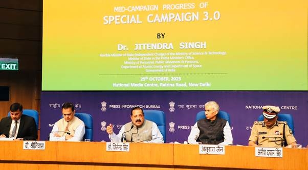 نئی دلی۔/ وزیر اعظم جناب نریندر مودی سے متاثر "سوچھتا” مہم نے کچرے سے دولت ‘ کے تصور کے بارے میں بیداری پیدا کی ہے۔ اب پیداواری ذرائع کے لیے ویسٹ میٹریل کی ری سائیکلنگ اور دوبارہ استعمال کے لیے جدت اور ٹیکنالوجی کے استعمال کے بارے میں بھی بہتر سمجھ بوجھ ہے۔یہ بات مرکزی وزیر مملکت (آزادانہ چارج) سائنس اور ٹکنالوجی ڈاکٹر جتیندر سنگھ نے کہی۔ وہ آج یہاں ایک پریس کانفرنس میں ہندوستان کے تمام سرکاری دفاتر میں لاگو کی جارہی سوچھتا خصوصی مہم 3.0 کے ہفتہ 3 کی پیشرفت کا جائزہ لے رہے تھے۔ڈاکٹر جتیندر سنگھ نے مصنوعی ذہانت، روبوٹکس اور ڈرون کی تثلیث کی وکالت کی تاکہ فضلے کو ذہانت سے الگ کیا جا سکے اور نتیجے میں آنے والے مواد کو تیزی سے ٹھکانے لگایا جا سکے۔”اب، اگر ہمارے پاس مصنوعی ذہانت سے چلنے والا ماڈیول ہے جو ٹھوس اور مائع فضلہ کو الگ کر سکتا ہے، تو ہمارے پاس روبوٹ ہے جو اسے لے جائے گا اور اسے ڈرون پر لوڈ کرے گا اور پھر ڈرون خود بخود اڑ کر اسے متعلقہ منزلتک لے جائے گا۔ اس بات پر روشنی ڈالتے ہوئے کہ ہر کچرا اس کی واپسی کے قابل ہے، ڈاکٹر جتیندر سنگھ نے کہا کہ محکمہ سائنس اور ٹیکنالوجی، ٹیکنالوجی ڈیولپمنٹ بورڈ اور سی ایس آئی آر نے حال ہی میں ‘ ری سائیکلنگ آن وہیلز’ بس شروع کی ہے، جو اپنی نقل و حرکت کی وجہ سے مختلف مقامات پر دولت کو ضائع کرنے سے روک سکتی ہے۔ ڈاکٹر جتیندر سنگھ نے کہا کہ دہرہ دون میں مقیم انڈین انسٹی ٹیوٹ آف پٹرولیم نے مشترکہ طور پر دوبارہ استعمال شدہ کوکنگ آئل وین تیار کی ہے جو استعمال شدہ کھانا پکانے کے تیل کو اکٹھا کرتی ہے اور اسے بائیو فیول میں تبدیل کرتی ہے۔ڈاکٹر جتیندر سنگھ نے کہا کہ حکومت نے پچھلے تین سالوں میں ملک بھر کے تمام سرکاری دفاتر کی طرف سے چلائی گئی تین خصوصی مہموں میں صرف اسکریپ کو ٹھکانے لگا کر 776 کروڑ روپے کی کل آمدنی حاصل کی ہے۔ اس آمدنی کا ایک بڑا حصہ، خصوصی مہم 3.0 کے آخری 20 دنوں میں 176 کروڑ روپے کمائے جا چکے ہیں۔”لہذا ہماری آمدنی پیدا کرنے کی رفتار بھی بڑھ رہی ہے۔ اس کا مطلب ہے کہ اب ہم نے اس سے دولت کمانے کا ہنر سیکھ لیا ہے۔اس کا مطلب یہ ہے کہ ہم اپنے پیمانے پر بہتری لا رہے ہیں، اب ہم سنترپتی نقطہ کے منتظر ہیں۔