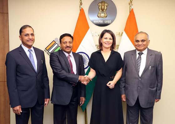 نئی دلی۔ 6 دسمبر۔ ایم این این۔جرمنی کی وزیرخارجہ عزت مآب محترمہ انالینا بیئربوک کی قیادت میں ایک جرمن وفد نے آج نئی دہلی میں نرواچن سدن میں اعلیٰ انتخابی کمشنر جناب راجیوکماراورانتخابی کمشنروں جناب انوپ چند رپانڈے اورجناب ارون گوئل سے ملاقات کی ۔جرمنی کے وفد میں جرمن پارلیمنٹ کے چارارکان محترمہ اگنیز سکابرگر ، جناب تھامس ارنڈل، جناب الرچ لیختے اورجناب آندرے لاریم ، بھارت میں جرمن سفیر ڈاکٹرفلپ ایکرمین اور جرمن وزارت خارجہ کے دیگرعہدیدار شامل تھے۔اس موقع پر اظہارخیال کرتے ہوئے ، اعلیٰ انتخابی کمشنر سی ای سی جناب راجیو کمارنے کہاکہ جمہوریت کا نظریہ ، بھارت کے تاریخی کوائف اورروایتوں میں گہرائی سے پیوست ہے ۔ بھارت کے انتخابات کی جسامت اورحجم کے بارے میں ایک جائزہ پیش کرتے ہوئے ، انھوں نے جرمن وفد کو اس تفصیلی مشقت کے بارے میں مطلع کیاجوای سی آئی ، آزادانہ ، منصفانہ ، برمبنی شمولیت ، قابل رسائی اورسبھی کی شرکت والے عام انتخابات کے انعقاد کی غرض سے ، 95کروڑسے زیادہ رائے دہندگان کے لئے کرتا ہے اور اس کے لئے 11لاکھ پولنگ مراکز قائم کئے جاتے ہیں اور ایک کروڑدس لاکھ پولنگ عملہ کی خدمات حاصل کی جاتی ہیں ۔ انھوں نے اس بات پرزوردیاکہ ای سی آئی ، ہرمرحلہ پرسیاسی پارٹیوں کی شرکت اور ان کے ذریعہ انکشافات کو یقینی بناتاہے ۔جناب کمارنے کہاکہ انتخابات سے متعلق ضروری سازوسامان اور متعلقہ خدمات کے چیلنجوں کےعلاوہ آزادانہ اورمنصفانہ انتخابات کو ممکنہ طورپر متاثر کرنے والے سوشل میڈیا پرجھوٹے بیانوں سے پڑنے والے مضراثرات ، انتخابات کے بندوبست سے متعلق زیادہ تر اداروں کے لئے ایک یکساں چیلنج کے طورپر تیزی کے ساتھ ابھرکرسامنے آرہے ہیں ۔جرمن وزیرخارجہ نے کمیشن کے ساتھ تبادلہ ٔ خیال کے دوران ، بھارت کے متنوع جغرافیہ، ثقافت اوررائے دہندگان کے چیلنجوں کے باوجود ، دنیا کی اس سب سے بڑی جمہوریت میں انتخابی کمیشن کی جانب سے انتخابی بندوبست اورانتظامات سے متعلق اس زبردست مشق کی ستائش کی۔ جرمن وفد کو ، انتخابات کے انعقاد کے سلسلے میں ای سی آئی کے ذریعہ ٹکنالوجی کے وسیع استعمال کے بارے میں تفصیل سے مطلع کیا گیا۔ جرمن وزیرخارجہ نے ، ای سی آئی کے ذریعہ وفد کے لئے ای وی ایم –وی وی پی اے ٹی کو بروئے کارلانے سے متعلق ایک مظاہرے کے دوران ای وی ایم کے ذریعہ ایک ووٹ ڈالا۔ انھوں نے جرمن ارکان پارلیمنٹ کے ساتھ ای وی ایمز کی سخت سکیورٹی خصوصیات کے مشادہ کیااور ای وی ایمز کوبروئے کار لانے سے متعلق انتخابی عمل کے ہرمرحلے میں سیاسی پارٹیوں کی شرکت کے عمل اوران ووٹنگ مشینوں کے استعمال ، نقل وحرکت ، اسٹوریج اور کام کاج کے دوران سخت قواعدوضوابط کا بھی مشاہدہ کیا۔
