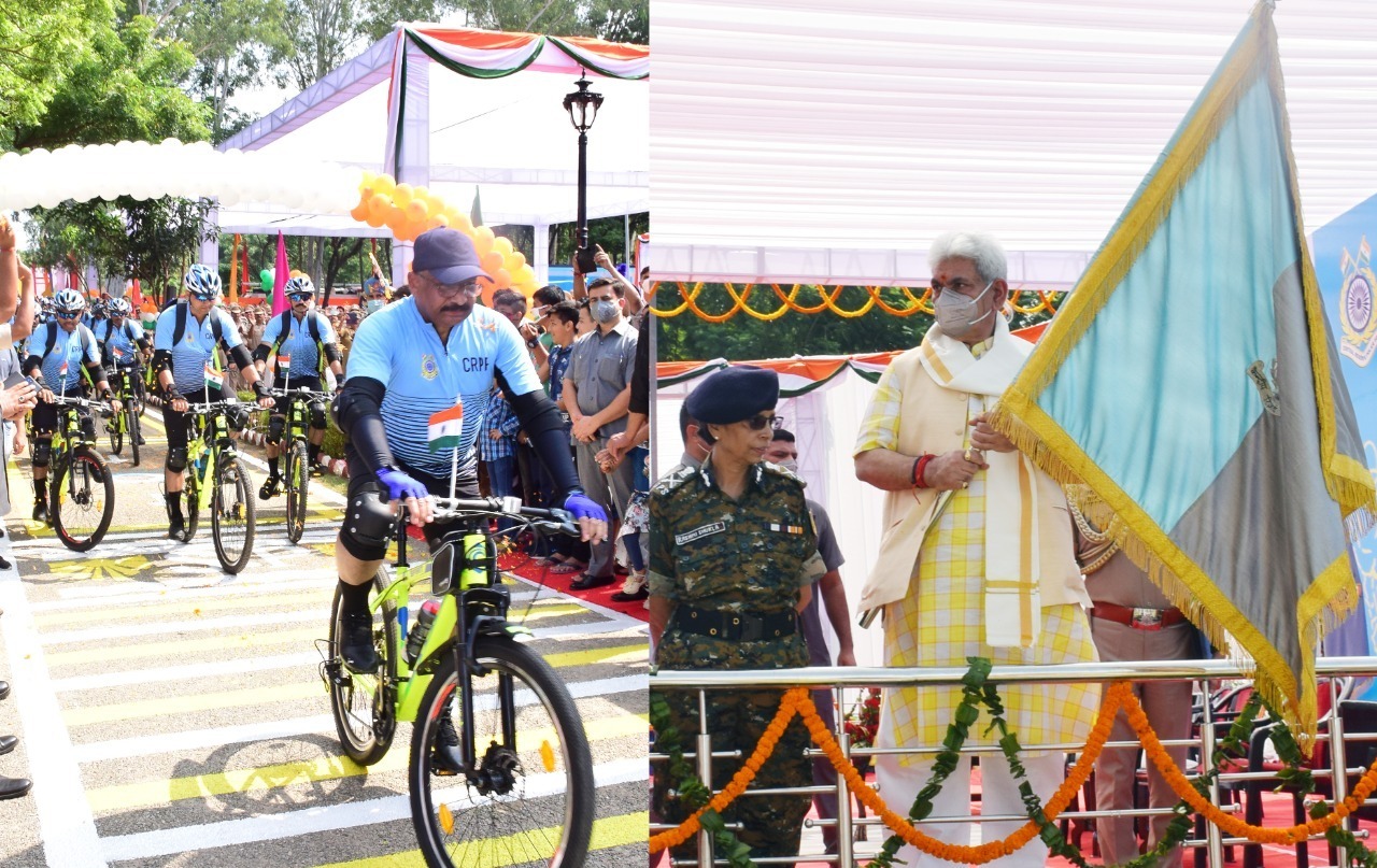 لیفٹیننٹ گورنر منوج سنہا نے آج ” آزادی کا اَمرت مہااُتسو“ تقریبات کے ایک حصے کے طور پر جموں سے راج گھاٹ نئی دہلی تک سینٹر ریزروپولیس فورس ( سی آر پی ایف ) کی سائیکل ریلی کو جھنڈی دِکھا کر روانہ کیا۔سی آر پی ایف کی چار سائیکل ریلیاں جو رہاٹ ، سابرمتی ، کنیا کماری اور جموں سے مختلف تاریخی مقامی سے گزرتی ہوئی 2 اکتوبر کو راج گھاٹ یاد گار پر اِختتام پذیر ہو گی۔اِس موقعہ پر خطاب کرتے ہوئے لیفٹیننٹ گورنر نے سلامتی دستوں کو سلام پیش کرتے ہوئے کہا کہ وہ جموں وکشمیر میں قابل تعریف کردار اَدا کر رہے ہیں اور پُر اَمن اور جامع معاشرے کو فروغ دے رہے ہیں۔لیفٹیننٹ گورنر نے کہا کہ سینٹرل ریزروپولیس فورس کے پاس قوم کی خدمت کے 83برسوں کی بھرپور وراثت ہے ۔ اُنہوں نے مزید کہا کہ بہادری اور قربانیوں کی اَن گنت کہانیوں کے ساتھ ، سیکورٹی ایجنسیوں کی تاریخ میں ایسی انوکھی مثالیں نایاب ہیں۔اُنہوں نے کہا کہ گزشتہ 13ماہ میں ایک معنی خیز تبدیلی آئی ہے اور جموں وکشمیر مشکلات پر قابو پاتے ہوئے ترقی کی ایک نئی صبح کا مشاہدہ کر رہا ہے۔لیفٹیننٹ گورنر نے کہا کہ حکومت نے جموںوکشمیر میں مجموعی ترقی کو تقویت دی ہے خواہ وہ زراعت ، تعلیم ، صنعت ، بنیادی ڈھانچہ ، دیہی رابطہ ، یاروزگار اور کاروباری شعبے میں ہو۔لیفٹیننٹ گورنر نے مزید کہا کہ حکومت لوگوں کو بااِختیار بنانے اور لوگوں کی شمولیت سے یوٹی کی پائیداری ترقی کے لئے رابطہ قائم کرنے اور شراکت دینے کے لئے حوصلہ اَفزائی کررہی ہے جو اِنفرادی فلاح و بہبود کی بنیاد ہے۔اُنہوں نے کہا کہ ہمیں اَپنے آپ کو اگلے 25 برسوں کے نظرئیے کے ساتھ تیار کرنے کی ضرورت ہے ۔ مجھے یقین ہے کہ جب ہم 2047 ءمیں آزادی کے صد سالہ تقریب منائیں گے ، نئے جموں وکشمیر کو ہماری عظیم قوم کی ترقیاتی کہانی میں شراکت کے ساتھ ایک خاص مقام حاصل ہوگا۔اُنہوں نے کہا کہ مختلف شعبوں میں کی گئی اِصلاحات نے ایک بنیادی تبدیلی لائی ہے اور اِس کے فوائد یوٹی کے دُور دراز علاقوں تک بھی پہنچ رہے ہیں۔اُنہوں نے کہا کہ”آزادی کا امرت مہااُتسو“تحریک آزادی کا جذبہ رکھتا ہے او رہمارے آزادی پسندوں کی قربانیوں کو یاد کرنا ہے جنہوں نے ہمیں مختلف چیلنجوں پر قابوپانے اور آج پوری دنیا میں ایک خاص مقام بنانے کی ترغیب دی ہے۔