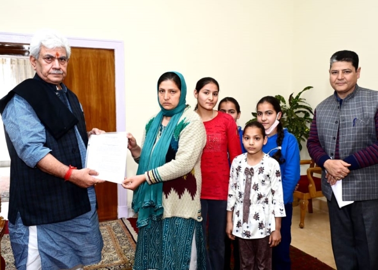 لفٹینٹ گورنر مسٹر منوج سنہا نے آج شہید سنیل پنڈت کی اہلیہ شریمتی سنیتا پنڈت کو تقرری کا لیٹر سونپا ۔ سنیل پنڈت کو دہشت گردوں نے شوپیاں میں مارا تھا ۔ لفٹینٹ گورنر نے شہید شہری کے اہل خانہ کو یو ٹی انتظامیہ کی طرف سے ہر ممکن مدد کا یقین دلایا ۔ سنیل پنڈت کے اہل خانہ بھی راج بھون میں موجود تھے ۔