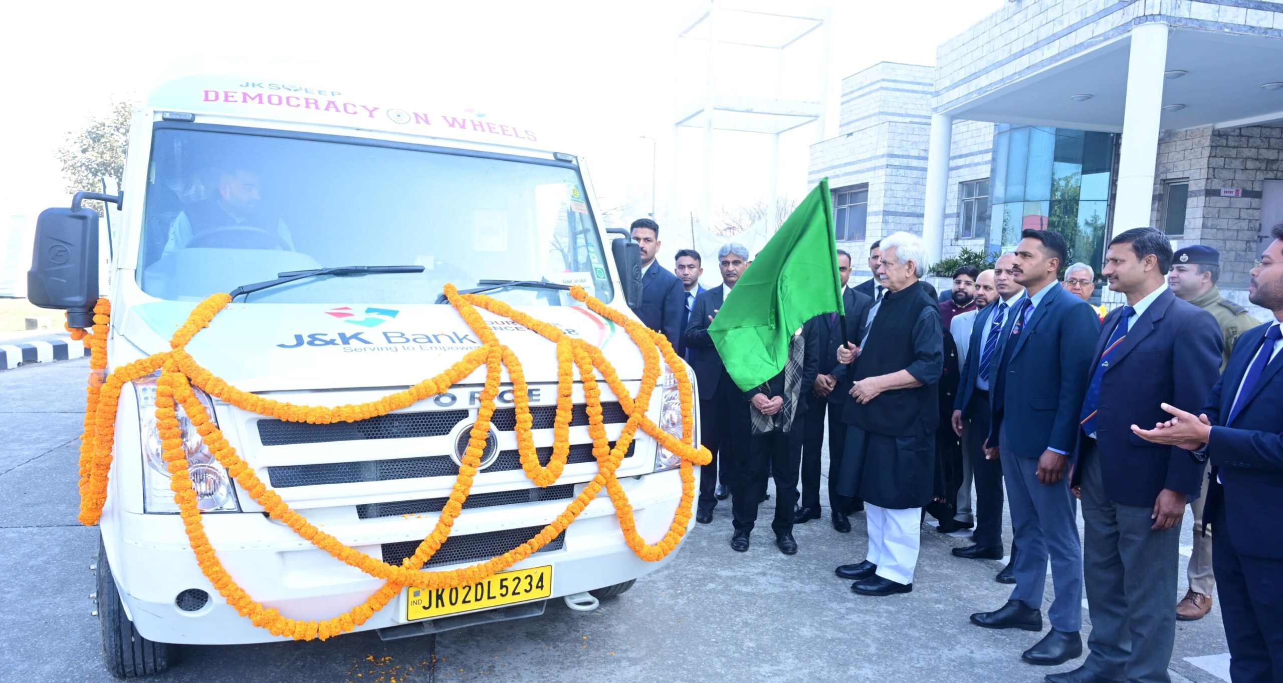 ایل جی نے "ڈیموکریسی آن وہیلز” کو جھنڈی دکھا کر جموں میں علاقائی ای وی ایم گودام کا افتتاح کیا
