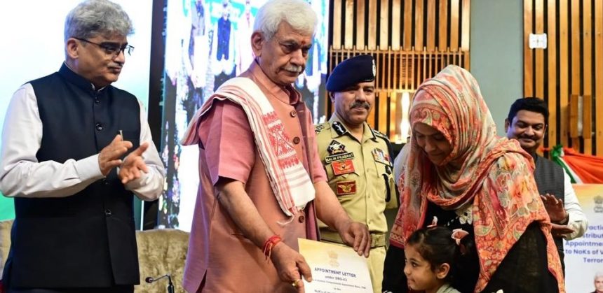 سری نگر، 5 اگست۔ ایم این این۔ جموںو کشمیر کے لیفٹیننٹ گورنر منوج سنہا نے آج پاکستان کے حمایت یافتہ دہشت گردوں کے ہاتھوں مارے گئے کشمیری شہریوں کے 158 اہل خانہ کو تقرری نامہ حوالے کیا۔ اس دوراندہشت گردی کے متاثرین کے اہل خانہ نے اپنے دردناک تجربات بیان کئے۔ انہوں نے پاکستان کی سرپرستی کرنے والے دہشت گردوں اور ان کے ہمدردوں کی طرف سے ان کے خاندانوں کے ساتھ ہونے والی ناانصافیوں کو بے نقاب کیا۔لیفٹیننٹ گورنر نے شہری شہیدوں کو دلی خراج عقیدت پیش کیا اور جموں کشمیر میں دہشت گردی کا شکار ہونے والے خاندانوں کی ہمت اور استقامت کو سلام پیش کیا۔”کئی دہائیوں سے لگے زخم اب مندمل ہو رہے ہیں۔ آج کے تاریخی واقعے نے ان خاندانوں کو بند ہونے کا احساس دلایا جو سالوں سے خاموشی سے صدمے کا شکار ہیں۔تین دہائیوں سے زائد عرصے سے دہشت گرد ریاست پاکستان اپنی پراکسی دہشت گرد تنظیموں کے ذریعے بے گناہوں کا خون بہا رہی ہے۔ ان کی روح پر پوشیدہ زخم محسوس کیے جا سکتے ہیں اور خاموش آنکھیں کئی ادھورے خوابوں کی گواہ ہیں۔دہشت گردی کے شکار خاندانوں کے لیے انصاف اور صحت یابی کا طویل انتظار ختم ہو گیا ہے۔ وہ پاکستانی دہشت گردوں کے کردار اور دہشت گردی کے ماحولیاتی نظام کو ظاہر کرنے کے لیے نکلے ہیں جو جموں و کشمیر میں کام کر رہا تھا۔لیفٹیننٹ گورنر نے عبدالمجید میر کے خاندان کا المناک بیان شیئر کیا، جن کی زندگی 29 جون 2004 کو بکھر گئی تھی۔ اس دن، شیخ پورہ، بارہمولہ سے عبدالمجید کو دہشت گردوں نے اغوا کر کے بے دردی سے قتل کر دیا تھا۔”عبدالمجید کے خاندان نے اپنا واحد کمانے والا کھو دیا اور سیکیورٹی سے متعلق اخراجات اسکیم کے تحت ایک لاکھ روپے بطور ایکس گریشیا ادائیگی حاصل کی۔ عبدالمجید میر کی شہادت کے باوجود، ان کے خاندان نے عزت کی زندگی گزارنے کے لیے جدوجہد کی۔ آج، ان کے بیٹے مدثر مجید کو سرکاری نوکری دے کر، انتظامیہ نے اپنی طویل ذمہ داری پوری کر دی ہے۔تین دہائیوں کی مشکلات کے بعد بالآخر سہیل مجید اور ان کے خاندان کو انصاف مل گیا ہے۔ آج اننت ناگ کے رہنے والے سہیل کو سرکاری ملازمت کے لیے تقرری کا خط ملا۔ ان کے والد عبدالمجید وانی کو 30 اگست 1994 کو پاکستان کے حمایت یافتہ دہشت گردوں نے گولی مار کر ہلاک کر دیا تھا۔ 31 سال بعد آخر کار لواحقین کو انصاف مل گیا ہے۔24 فروری 2000 کو بارہمولہ کے وارپورہ کے رہنے والے ایس پی او منظور احمد راتھر کو پاکستان کے حمایت یافتہ دہشت گردوں نے قتل کر دیا۔ 25 سال تک ان کے خاندان کو کوئی معاوضہ نہیں ملا۔ آج ان کے بیٹے خورشید احمد راتھر کو تقرری کا لیٹر ملا ہے۔ خاندان کے لیے تکلیف دہ دور بالآخر ختم ہو گیا۔پرویز احمد ڈار کے لیے انصاف کا راستہ تکلیف دہ تھا۔ 6 جولائی 1996 کو دہشت گردوں نے ان کے والد غلام قادر ڈار کو قتل کر دیا۔ 30 جولائی 2004 کو ان کے بھائی اعزاز احمد ڈار کو بھی دہشت گردوں نے قتل کر دیا۔ اپنے والد کی موت کے 29 سال بعد، پرویز کا ڈراؤنا خواب ختم ہو گیا۔انہوں نے مشاہدہ کیا کہ دہشت گردی کے متاثرین کے خاندانوں کی زندگیوں میں موجود خلا کو مالی امداد یا ملازمتوں سے پر نہیں کیا جا سکتا، لیکن اس بات کو یقینی بنایا جائے گا کہ یہ خاندان عزت کے ساتھ زندگی گزار سکیں۔