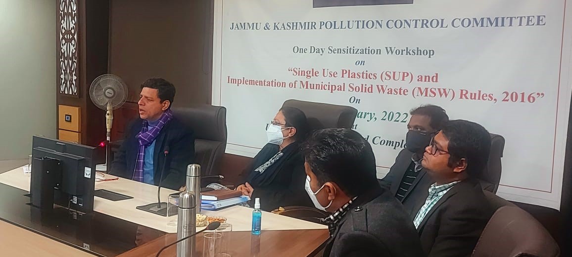 جے اینڈ کے آلودگی کنٹرول کمیٹی ( جے کے پی سی سی ) نے آج شہری بلدیاتی اداروں کیلئے سنگل یوز پلاسٹک ( ایس یو پی ) اور میونسپل سالڈ ویسٹ رولز 2016 کے نفاذ کے حوالے سے ایک روزہ سینسیٹائزیشن ورکشاپ کا انعقادکیا ۔ ورکشاپ کا مقصد یو ایل بیز کو جموں و کشمیر میں ویسٹ منیجمنٹ کے موجودہ منظر نامے بشمول ایس یو پیز کے بارے میں حساس بنانا تھا اس کے علاوہ متعلقہ رہنما خطوط اور این جی ٹی کی ہدایات پر عمل درآمد کے بارے میں ریگولیٹرز اور عمل درآمد کرنے والی ایجنسیوں کے درمیان بات چیت کیلئے ایک پلیٹ فارم مہیا کرنا تھا ۔ کمشنر سیکرٹری جنگلات ، ماحولیات سنجیو ورما نے ورکشاپ کا افتتاح کیا جبکہ چئیر پرسن جے کے پی سی سی نیلو گیرا مہمانِ خصوصی تھیں ۔ سنجیو ورما نے جے کے پی سی سی کی اس قسم کی حساسیت کے ورکشاپس کے انعقاد کی کوششوں کی تعریف کی ۔ انہوں نے مقامی اداروں پر زور دیا کہ وہ ایس یو پیز پر پابندی اور ایم ایس ڈبلیو قوانین کے نفاذ سے متعلق معاملات میں متعلقہ قواعد ، رہنما خطوط اور این جی ٹی کی ہدایات کی بروقت تعمیل کو یقینی بنائیں ۔ انہوں نے یکم جولائی سے ایس یو پی پر پابندی کو یقینی بنانے کیلئے حکومت ہند کی طرف سے جاری کردہ نوٹیفکیشن پر عمل درآمد کیلئے ایک موثر حکمت عملی تیار کرنے کو کہا ۔